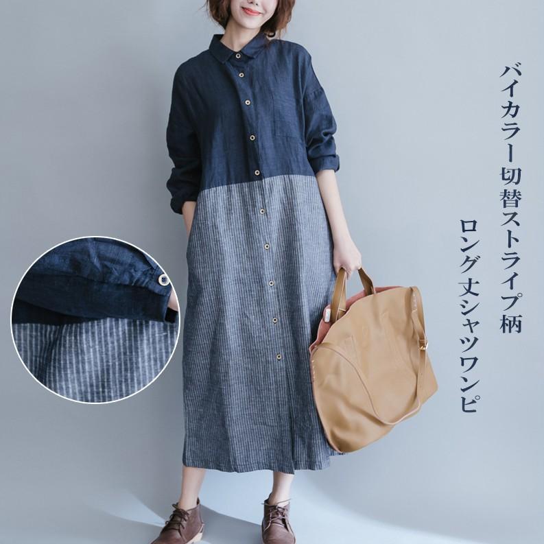バイカラー ウエスト切替 長袖 ロング丈 シャツワンピース シャツワンピ 体型カバー トップス レディース 期間限定 ポイント消化 Roteeo レディースファッション 通販 Yahoo ショッピング